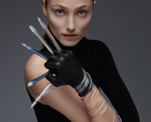 JetPeel™ verwendet einen stark komprimierten und beschleunigten Gasstrom, der es ermöglicht, Flüssigkeiten in vernebeltem Zustand in laserfeine Jetstreams zu bündeln. Durch die patentierten JetPeel™-Handstücke werden diese Jetstreams mit Unterschallgeschwindigkeit, also mehr als 200 m/s auf die Haut gerichtet. Diese Handstücke, die wie technische Lesestifte anmuten, sind in diversen Größen verfügbar und mit unterschiedlichen Aufsätzen ausgestattet, die jeweils für die vorgesehene Behandlung optimiert sind. Bei seiner Anwendung auf der Haut erzeugt das Handstück kontinuierlich feinste Aerosolstrahlen, durch welchdie Epidermisschicht exfoliert und die Hautoberfläche sanft gedehnt wird. Ganz ohne den Einsatz von Nadeln, und folglich auch ohne Schmerzen oder weitere Unannehmlichkeiten wie Hautverletzungen, erschließen die Jetstream Mikrokanäle in der Haut, die einen direkten Zugang zu tieferen Hautschichten ermöglichen. Durch die Verwendung des JetPeel™-Geräts in Kombination mit Jet Solutions mit seinen exklusiven Formeln für die Behandlung diverser Hautprobleme, werden den Jetstreams nährende Mikrotröpfchen zugeführt, die sich so unter die Hautoberfläche verbringen lassen und auf die tieferen Hautschichten einwirken. So lassen sich effektiv sichtbare Resultate und die Linderung dermatologischer Probleme erzielen.